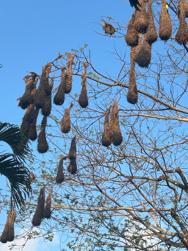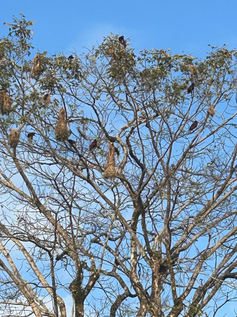 We are woken up early each morning by a very noisy dawn chorus- two birds in particular the Great tailed grackle and the montezuma oropendola who have large nests behind our lodge